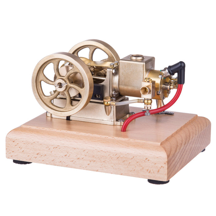 Metal Adjustable Speed Micro Horizontal Water-cooled Gasoline Engine Internal Combustion Engine Model Features: Mini Engine: This is a miniature engine with a water-cooled structure and an adjustable speed carburetor. Made of brass and stainless steel. Wooden base for easy placement and operation. You will love this exquisite model for its precision and craftsmanship.