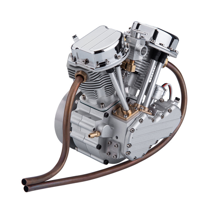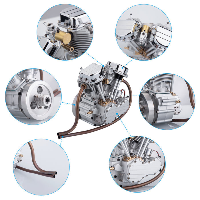 Fine Processing: The body is manufactured with aluminum CNC precision processing, and the two copper exhaust elbows are more distinctive. The surface of the cylinder block is anodized, and the rocker cover is chrome-plated. The engine will remain bright and clean for a long time, making it a visually pleasing artwork.