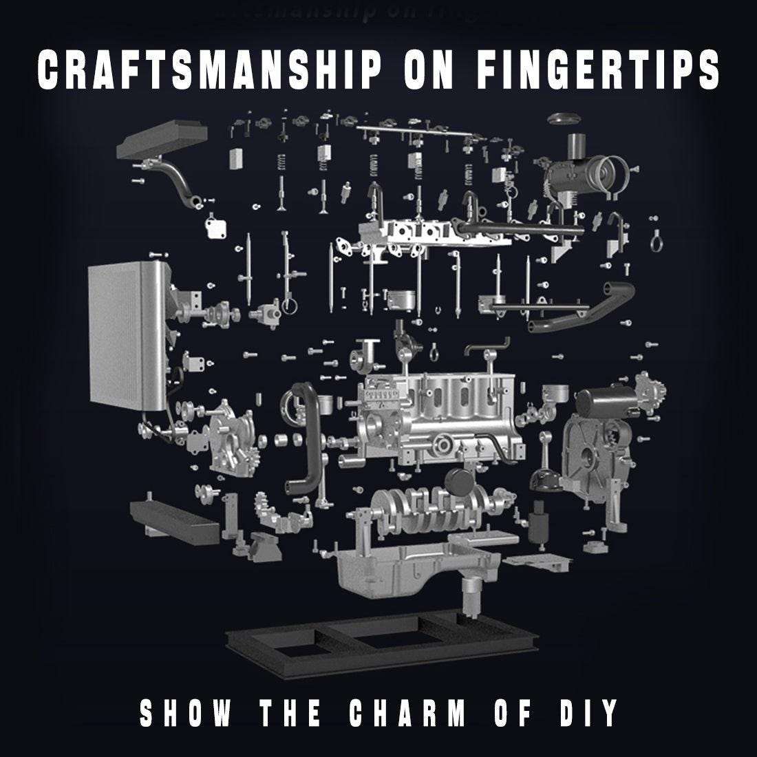 Diesel Engine DIY Kit Runs on Electricity 300+ pcs 1/10th Scale Self Assembly